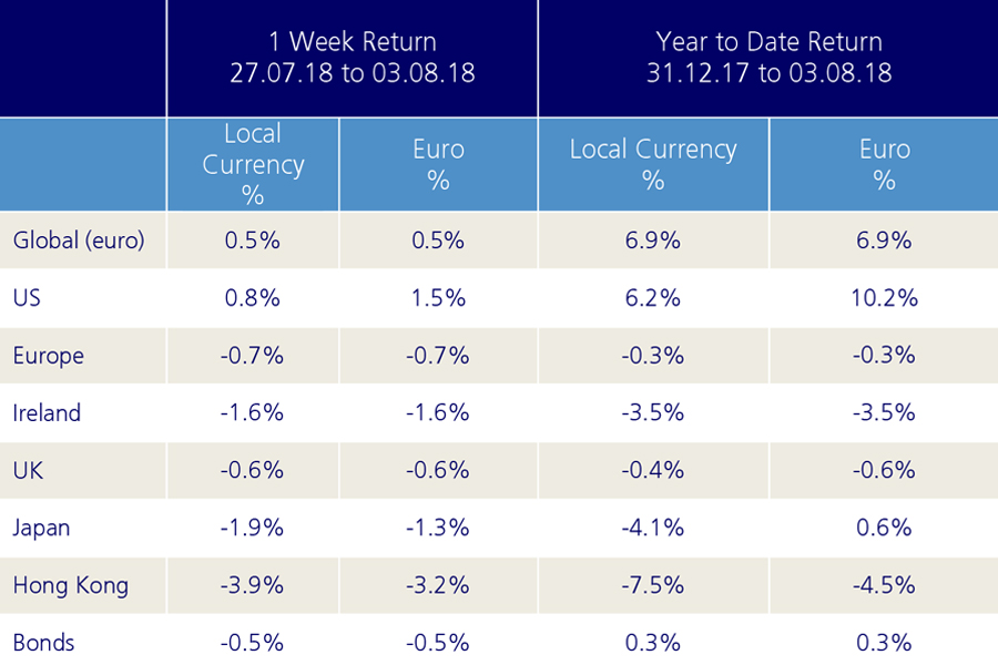 Equities moved higher last week, as earnings continued to be a positive influence on markets. Apple took most of the headlines as a positive earnings report pushed it to become the first trillion dollar company in history. From a wider perspective 4/5ths of the S&P has now reported with over 80% beating earnings-per-share expectations.