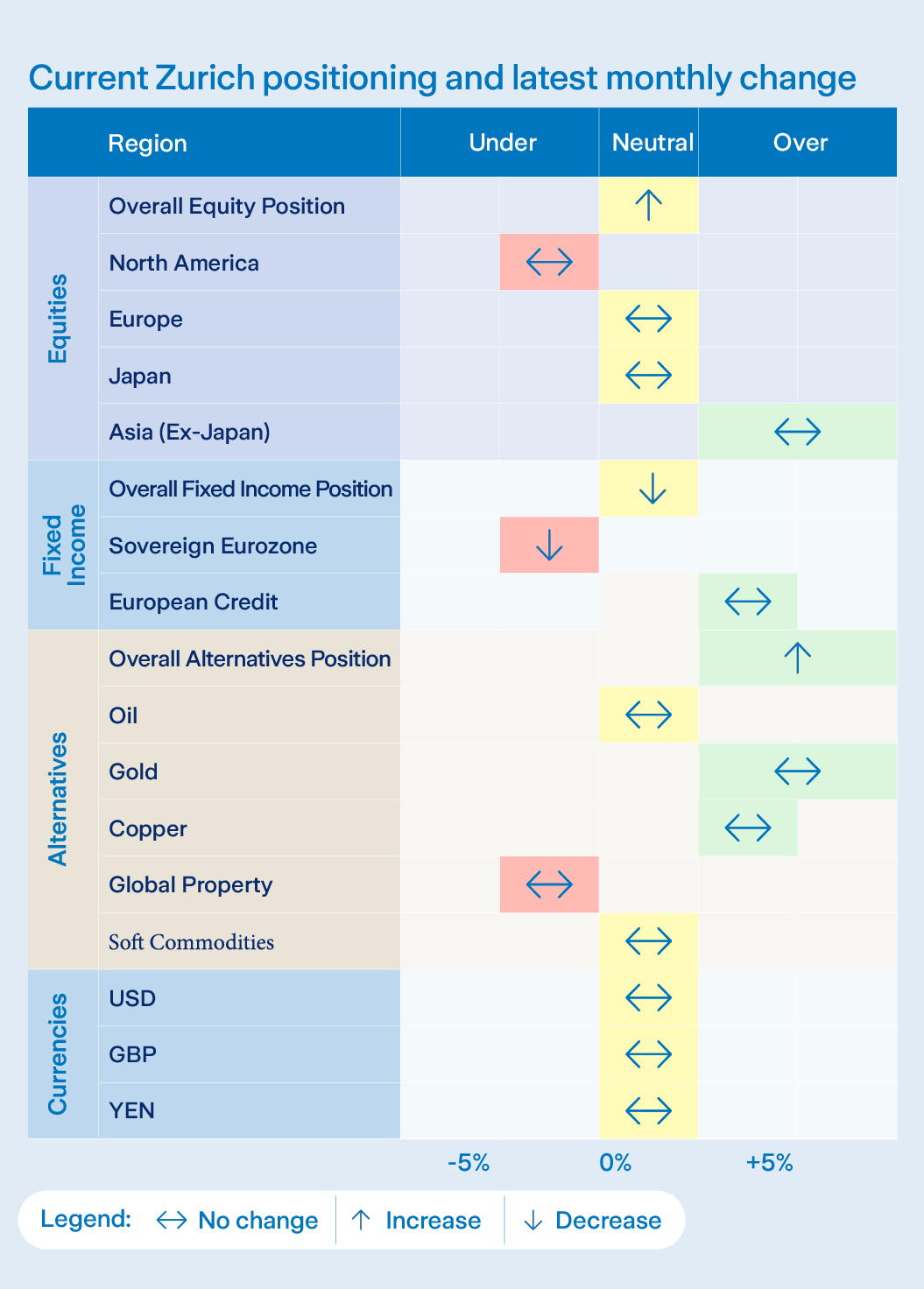 In September, we incorporated a new real estate-focused allocation, now serving as the global property component within the Active Asset Allocation (AAA) fund and multi-asset funds. This fund tracks an index of the largest real estate companies in developed equity markets. From a sector perspective, we favour Communication Services, Materials and Industrials while remaining underweight in Consumer Staples, Energy and Utilities. We also have an overweight position in gold and a slightly short bond duration. Regionally, our equity allocation remains underweight in the US, overweight in Asia Pacific, and broadly neutral across Europe and Japan.